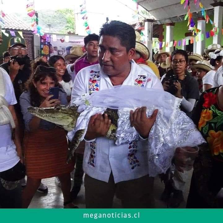 Au Mexique, dans une communauté indigène ,le maire de San Pedro Huamelula a pris pour épouse une femelle Caïman, vieille tradition de 230 ans.