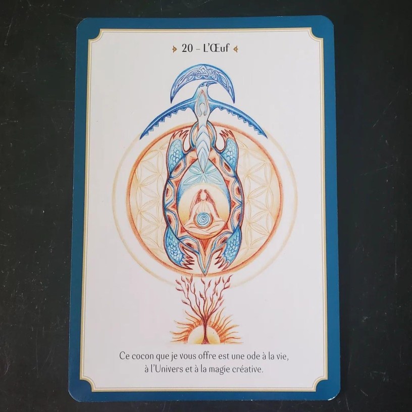 Dans toutes mythologies, l’œuf symbolise la naissance, la résurrection dans le chaos ou encore la fertilité. Ovale tel l’infini et l’infinité des possibles, il représente par sa forme circulaire le cycle perpétuel de la vie. L’œuf est en quelque sorte le germe fort et prometteur de toute manifestation, de toute création. Sa coquille, solide et perméable, offre protection et chaleur sans pour autant étouffer la vie qui s’anime en secret dans la pénombre de sa carapace.