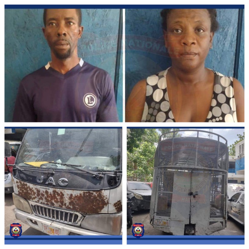 d’Haïti Rocheny et Gay Daphney ont été interceptés par la Police,le samedi 29 juillet 2033, lorsqu’ils voulaient récupérer le véhicule abandonné par le chauffeur,en contournant la route de Martissant.