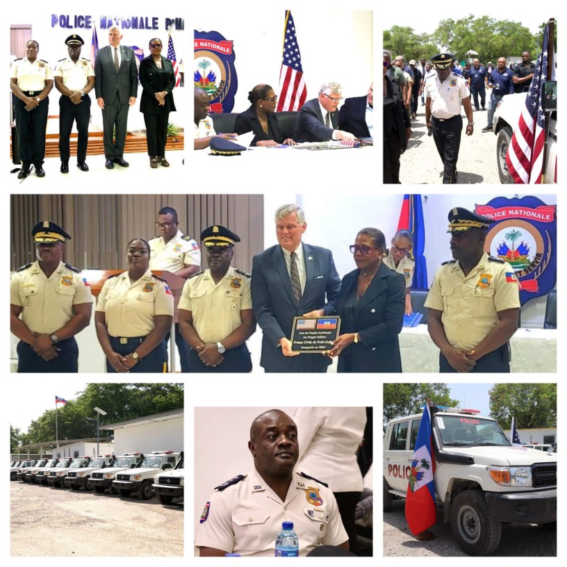 Lors de la cérémonie de remise des clés de ces matériels roulants, le Directeur Général a.i de la PNH, Frantz Elbé s’est fait accompagner des membres du haut Commandement. L’Ambassadeur M. Éric Stromayer, Chargé d’affaires des États-Unis en Haïti, la Ministre de la Justice et de la Sécurité Publique, Mme Emmelie Prophète Milcé, des représentants de l’INL et des représentants du gouvernement américain, ont également pris part à cette activité.