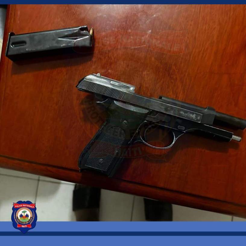 Lors de cette intervention, la Police a confisqué deux (2) armes à feu, dont un pistolet de marque Taurus PT-92 et de série B 21045 et un révolver de calibre 38, ainsi que d’autres éléments constituant d’armes à feu.