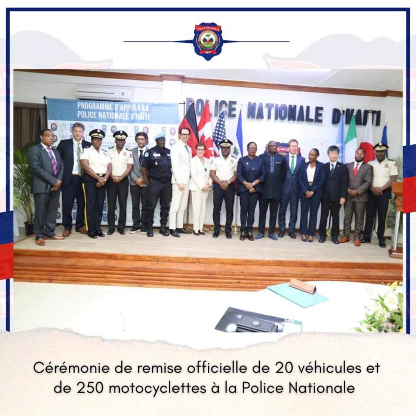 La Police Nationale d’Haïti (PNH) a reçu, ce vendredi 27 Octobre 2023, 20 véhicules Pickup Toyota Land Cruiser et 250 motocyclettes, flambant neufs, dans le cadre d’un programme d’appui à la Police Nationale d’Haïti initié par le Programme des Nations Unies Pour le Développement (PNUD) et par l’Office des Nations Unies contre la Drogue et le Crime (ONUDC).