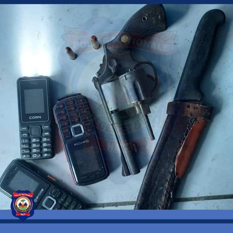 Un (1) revolver, trois (3) téléphones portables et un (1) couteau ont également été confisqués par les agents de l’ordre.