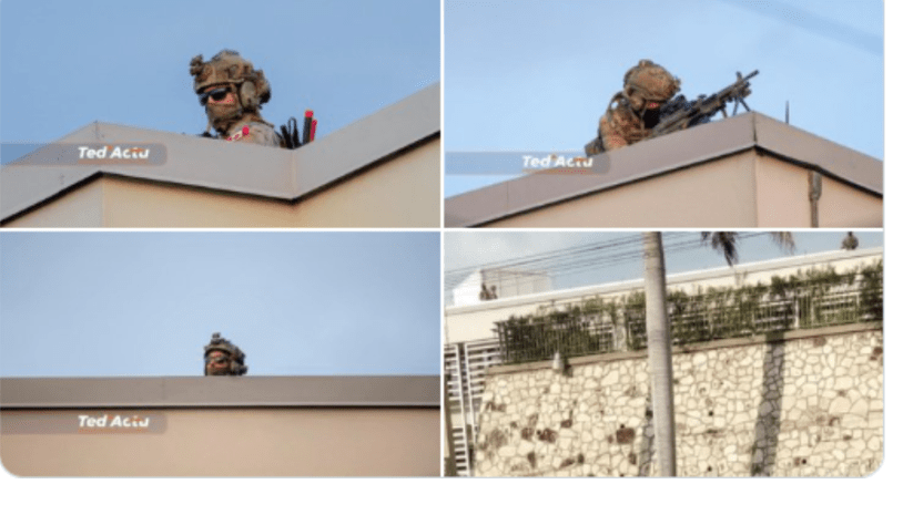 Sur le toit de l’embassade Canada qui se trouve sur la route de Delmas on constate des soldats déjà en possession pour la sécurisation dudit bâtiment.
