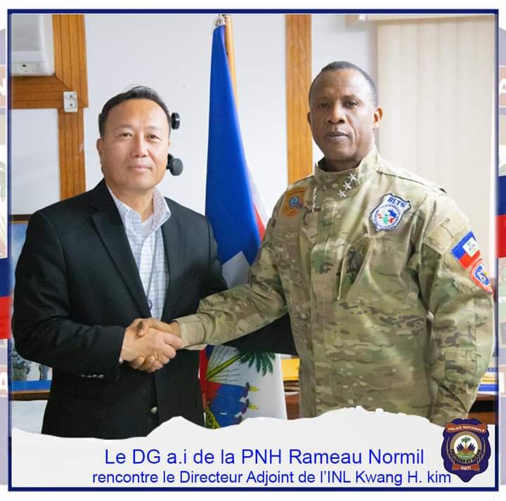 Cette délégation était composée de son Directeur Adjoint Kwang H.KIM, de Jean Claude Mondésir, Program Advisor-Law Enforcement Specialist International Narcotics et Law Enforcement et de Garry Jeanniton.