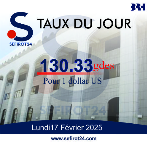 Le taux de change de la BRH pour ce lundi 17 février 2025 est de 130.33 gourdes pour 1 dollar américain .