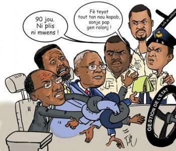 Majorite gwo otorite sivil ki nan tèt leta dayiti nan CPT ak gouvènman Fils-Aime a nan gang. Gen kèk eksepsyon tankou Edgard Leblanc ak reprezantan legliz katolik la. Sa kreye gwo konfli yon bò ant pèp la k’ap kore lapolis ak lame paske yo vle kraze gang epi yon lòt bò tout move grenn ki nan leta ki gen relasyon ak gang ki nan diskou yo ap pran pòz yo pa nan gang men yo fon ladan’l. Sak fè sitiyasyon pi konplike toujou se paske Fritz Jean ap chache voye Fils-Aimé ale anvan li monte 7 Mas. Fils-Aimé limenm met kòb deyò nan lari a e laprès pou ajanda pal triyonfe. Batay la rèd.