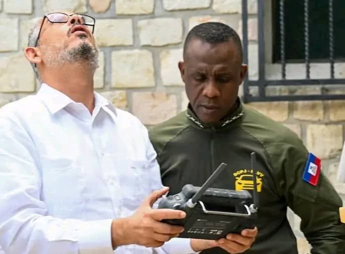 Kòm pa t gen yon stratéji klè sou itilizasyon drone yo, anpil moun te kòmanse poze kesyon poukisa drone yo se nan primati a yo ye? Poukisa yo pa nan men enstitisyon teknik ki ta dwe jere yo ki se lame ak lapolis? Bagay la te vinn jenan lè li te klè pou tout moun ak kèk aktè kominote entènasyonal la, se politik ki t ap fèt a dròne yo nan primati, se pa t goumen kont gang a ensekirite. Lè Fils-Aime wè l ap sot lèd l al monte yon operasyon desepsyon. Li fè foto a direktè jeneral lapolis Normil Rameau pandan li t ap pilote yon dròne. Foto a se te pou fè moun kwè ke primati a remèt lapolis drone kamikaze yo ⬇️: