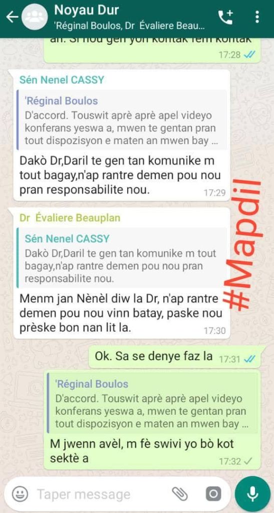 Menm Moïse Jeanchal Pitit Desalin te voyé mandé l kòb tou. Li rélé chèf gang yo ajan devlopman. Boulos ak André Michel touyé militan Ti Blan Tatou ak Badou epi yo pran pòz nan laprès se pouvwa Jovenel Moïse la ki touyé. Se te manti, référans yo piba.