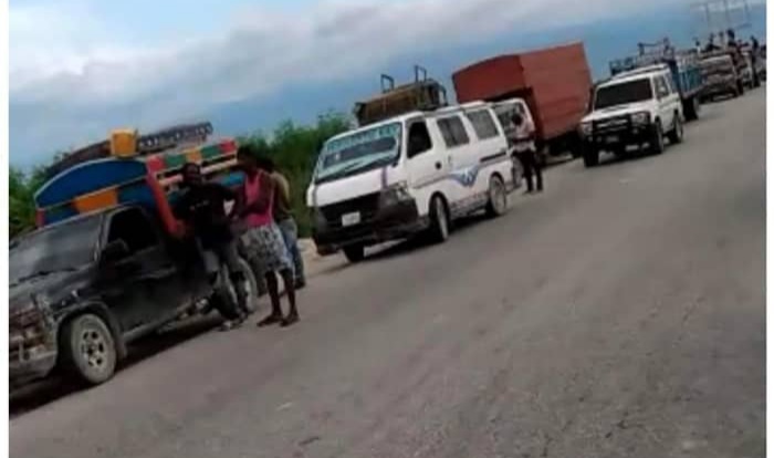 « Nou bouke viv anba men bandi ! », ont scandé les manifestants, bloquant pendant des heures un axe vital reliant l’Artibonite au Nord du pays, perturbant le transport de marchandises et de voyageurs.