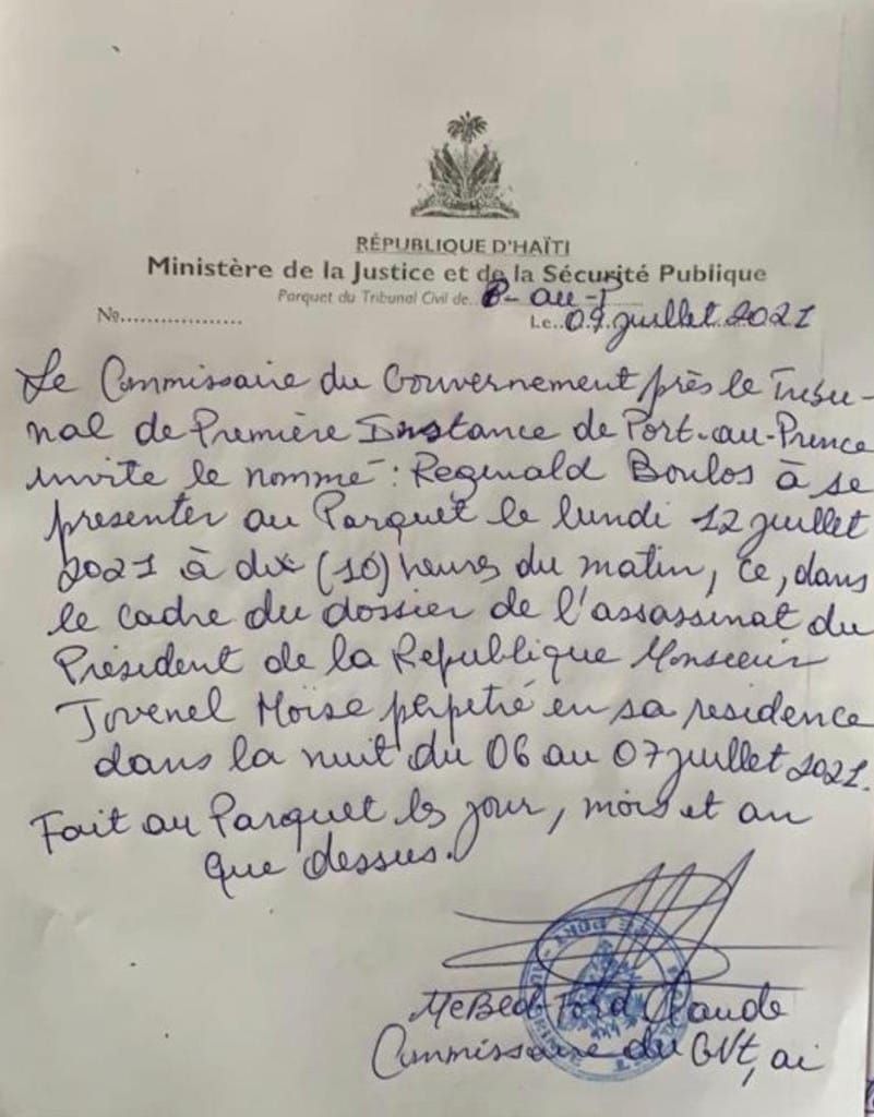 Reginald Boulos est sous les verrous en Floride. Son dossier criminel en Haïti est épais. Il est impliqué dans l’assassinat du Président Jovenel Moïse, un mandat de la justice existe pour lui depuis le 9 Juillet 2021.