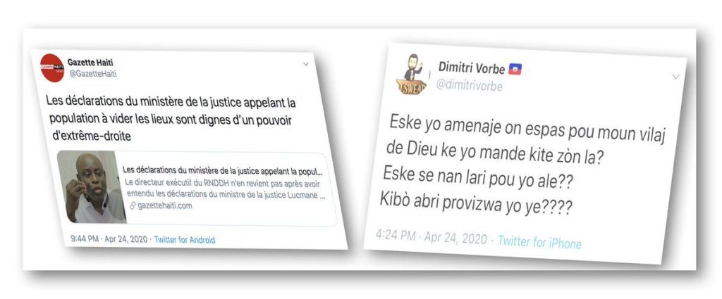 Quand le gouvernement avait décidé de prendre des mesures pour démanteler et désarmer les gangs à travers une opération policière annoncée au village de Dieu contre le gang 5 secondes, Espérance tenta de ralentir et discréditer l’opération à travers une lettre publique adressée au Ministre de la Justice Lucmane Dellile le 29 Avril 2020. Il sera aidé dans cette tentative par un tweet de l’oligarque Dimitri Vorbe qui est le boss du chèf de gang Izo dont le quartier général est le village de Dieu, voir ⬇️: