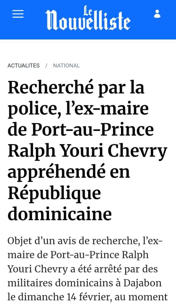 Ralph Youri Chevry avait été appréhendé le 14 février par la police dominicaine à Dajabon alors qu’il chercherait à s’échapper, voir ⬇️: