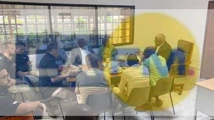 Ce même Youry Chevry, fournisseur d’armes de Fantôme 509, serait aujourd’hui à la tête des brigades de toute la zone métropolitaine. Fantôme 509 aurait été légitimé par le maire Youri Chevry à travers les multitudes brigades opérant dans le moment. Pour bien comprendre il faut rappeler que Patrick Pélissier, l’avocat de l’organisation terroriste Fantòm 509, est aujourd’hui ministre de la justice, voir sa photo avec les chefs de Fantòm 509 ⬇️: