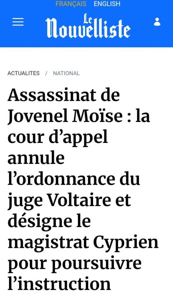 Lajistis kowonpi jis nan mwèl nan peyi dayiti. Kriminèl yo gen kontwòl 40% pouvwa jidisyè a. Jou ki te 13 Oktòb 2025 kou dapèl pòtoprens anile òdonans ak rapò jij koupyon e kowonpi Walther Wesser Voltaire. Gade la: https://lenouvelliste.com/article/260792/assassinat-de-jovenel-moise-la-cour-dappel-annule-lordonnance-du-juge-voltaire-et-designe-le-magistrat-cyprien-pour-poursuivre-linstruction