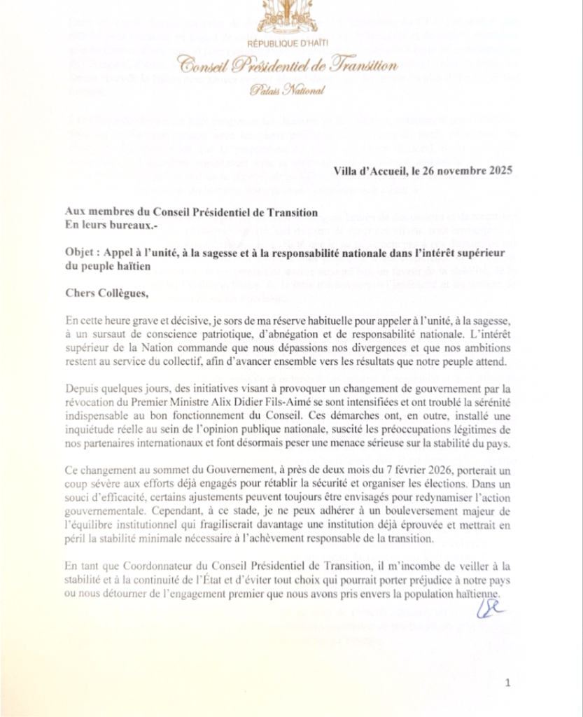 Pandan deba sa yo ap fèt 26 Novanm kowòdonatè KPT a Laurent St Cyr pibliye yon lèt kote li di afè revoke Fils-Aimé a li pa ladanl. Anpil moun gade lèt sa tankou yon ak trayizon. Men kopi lèt sa ⬇️: