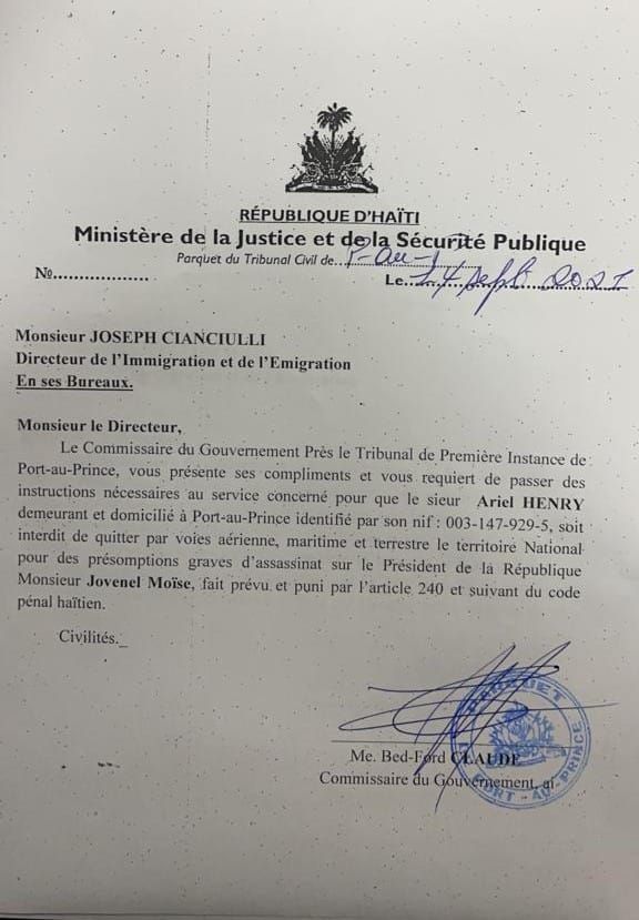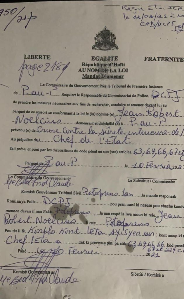 Se ak manda ilegal Pierre Espérance ak Roger Noëlcius fabrike ke kriminÚl ki nan operasyon Bolivi yo pral fÚ tantativ pou touye Prezidan Jovenel Moïse 7 Fevrier 2021 ak jij Ivickel Dabrésil nan Tibwa.