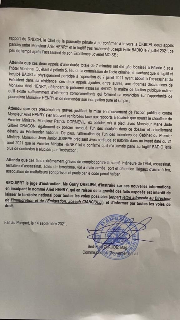 Jij koupyon Voltaire pral fĂš disparĂšt 80% sak te nan rapĂČ 900 paj ankĂšt direksyon santral polis jidisyĂš (DCPJ). Lap fĂš disparĂšt toub korespondans ant RĂ©ginald Boulos e pastĂš Christian Emmanuel Sanon. Jij koupyon Voltaire pral fĂš disparĂšt manda ilĂ©gal la, rekizitwa sipletif denfome ki montrĂ© wĂČl Ariel Henry nan touye Prezidan Jovenel MoĂŻse. Asasen yo fĂš plizyĂš lĂČt dosyĂ© klĂ© disparĂšt. Men kopi rekizitwa sipletif la âŹïž:
