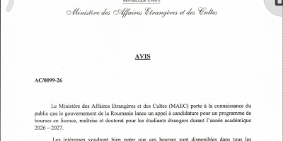 Éducation, Formation Bourses d’études : la Roumanie ouvre ses portes aux étudiants étrangers pour l’année académique 2026–2027 24 mars 2026 — 0 Commentaire